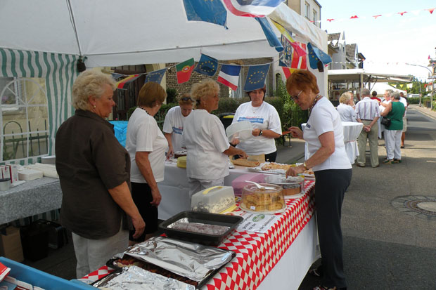 Die Frauen bringen jede Menge Kuchen unter die Leute.